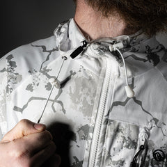 Jackan har ställbar huva med hög krage, bröstficka samt vanliga, rymliga fickor med vertikal ingång för att minska risken att tappa exempelvis pejl eller handskar, jackan är dessutom justerbar i nederkant.